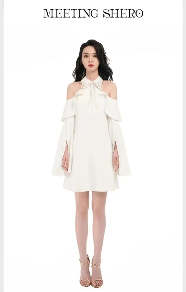 貂蝉金色仲夏夜露肩连衣裙